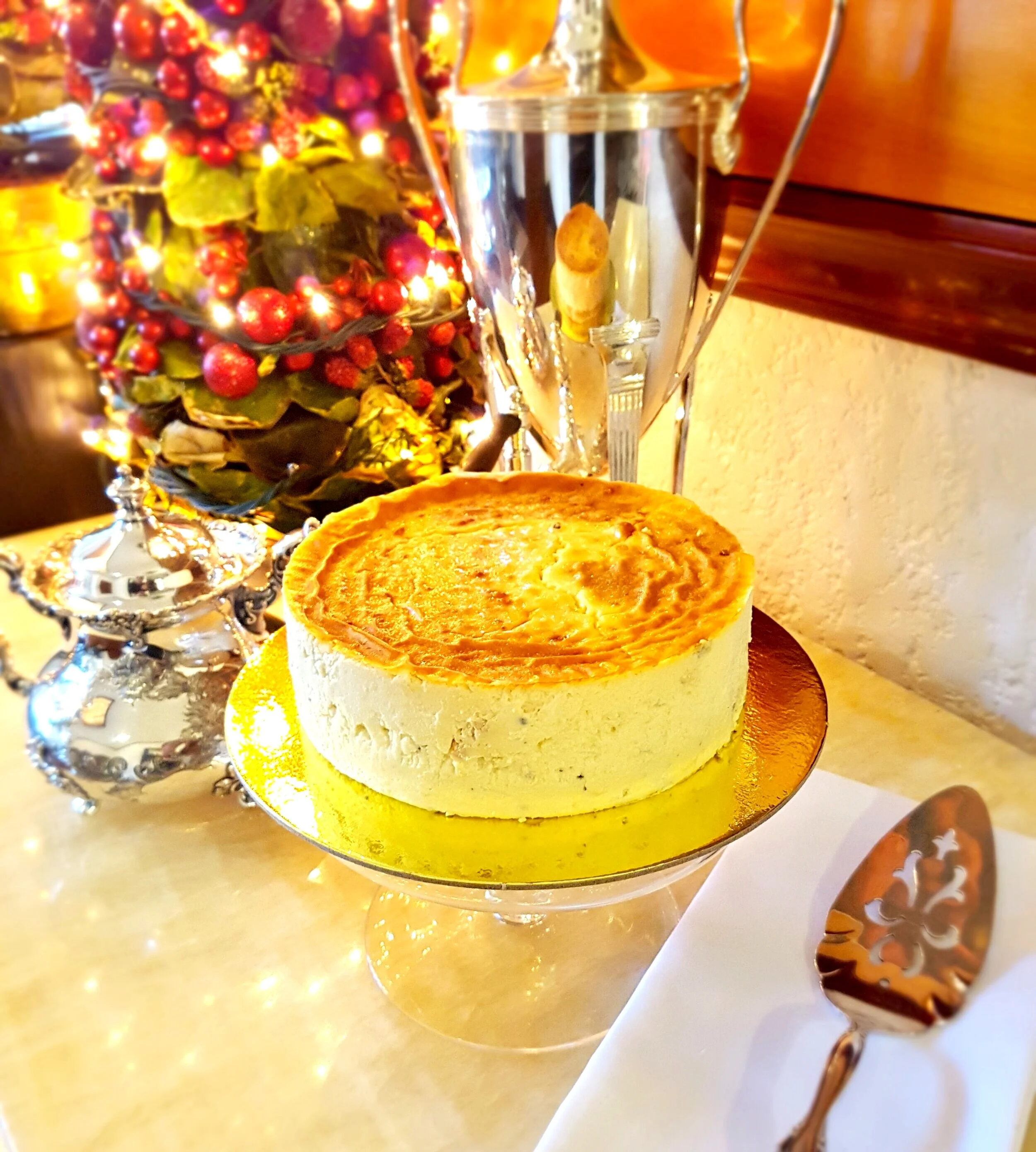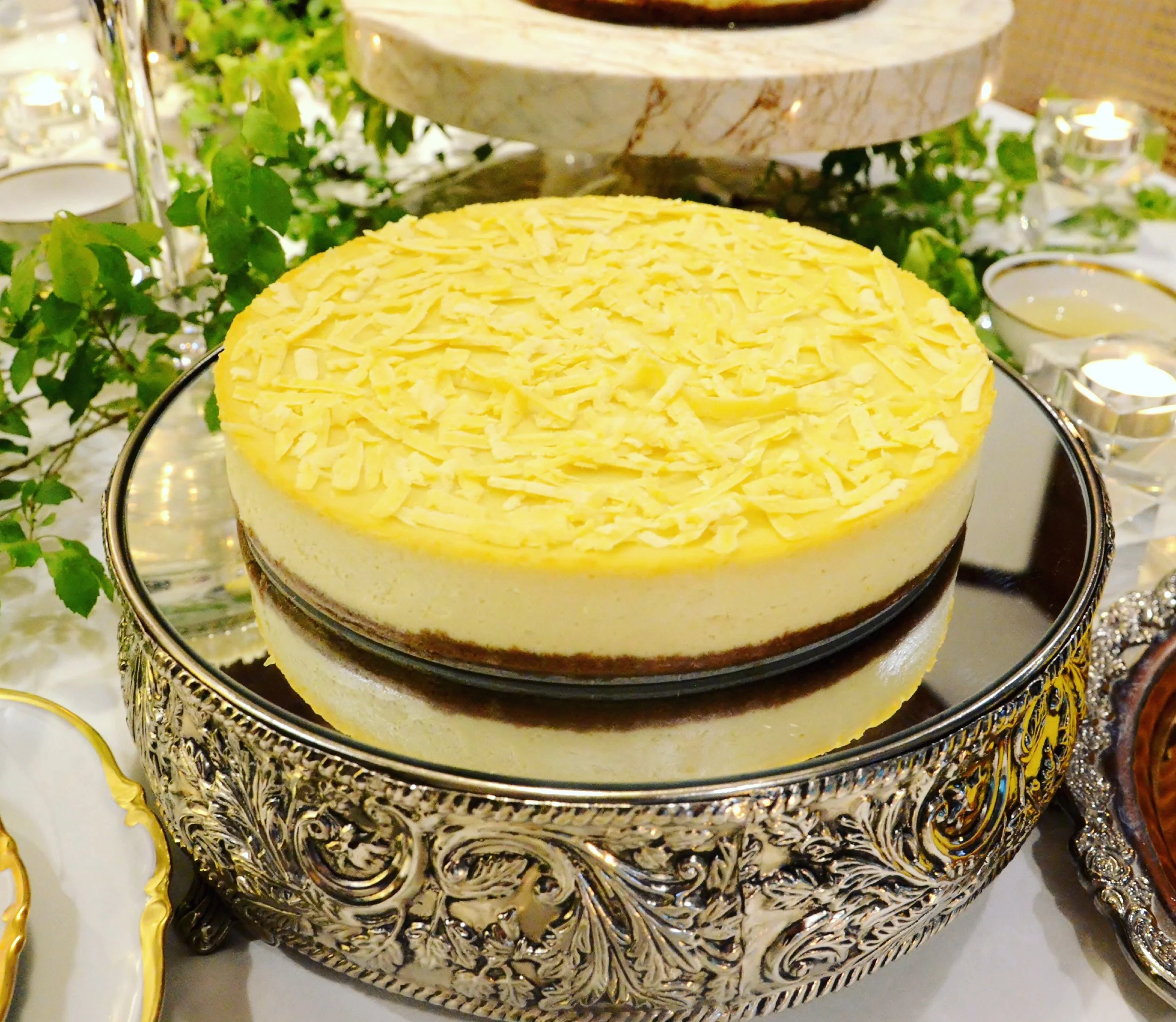 Generous shavings of Quezo de Bola enveloped in a rich and velvety cheesecake.